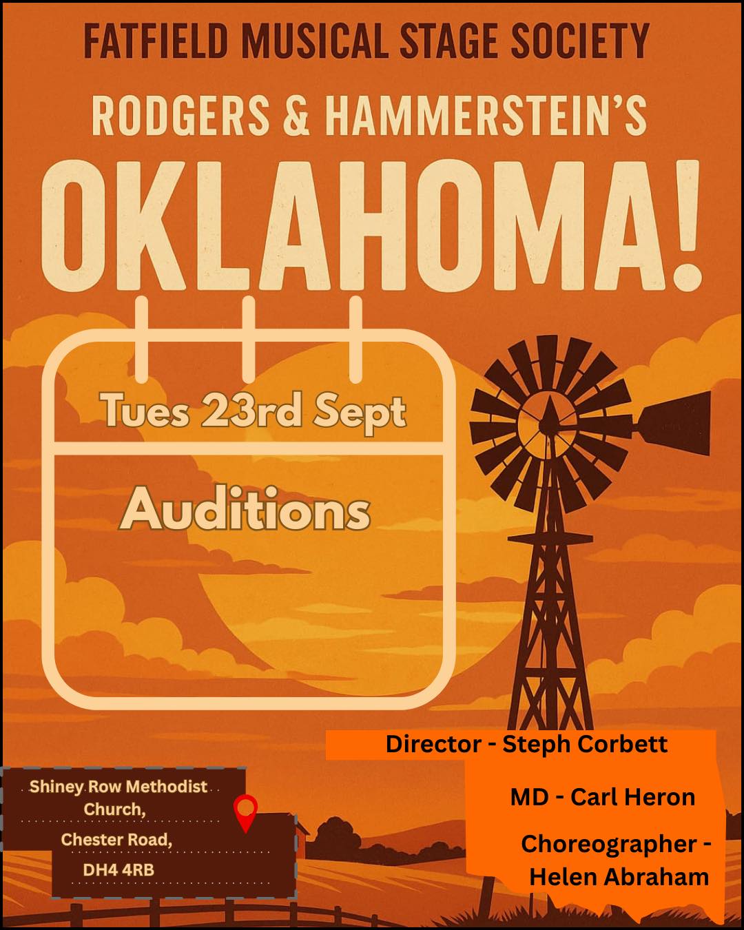 We’re on the hunt for some fresh faces (and especially fresh male voices ) to saddle up and join Fatfield Musical Stage Society for Rodgers & Hammerstein’s Oklahoma!