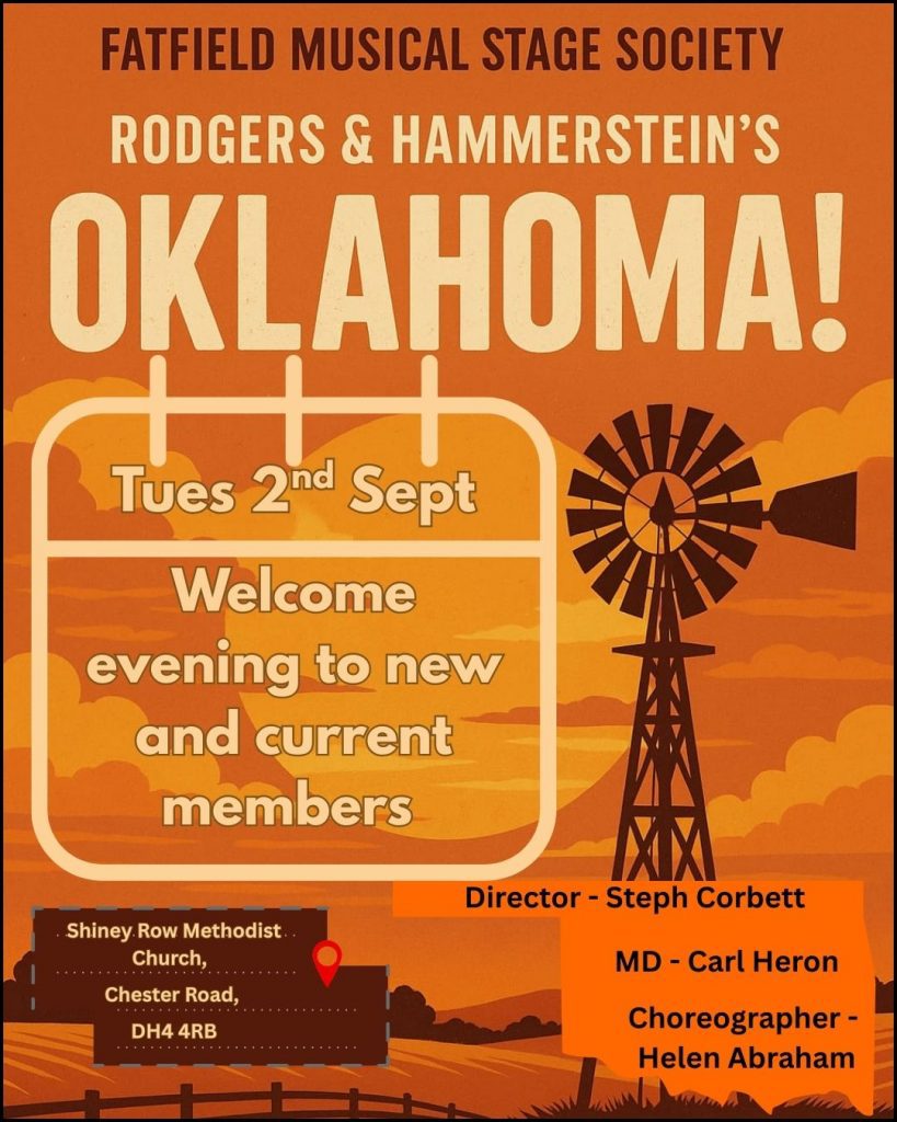 We’re on the hunt for some fresh faces (and especially fresh male voices) to saddle up and join Fatfield Musical Stage Society for Rodgers & Hammerstein’s Oklahoma!